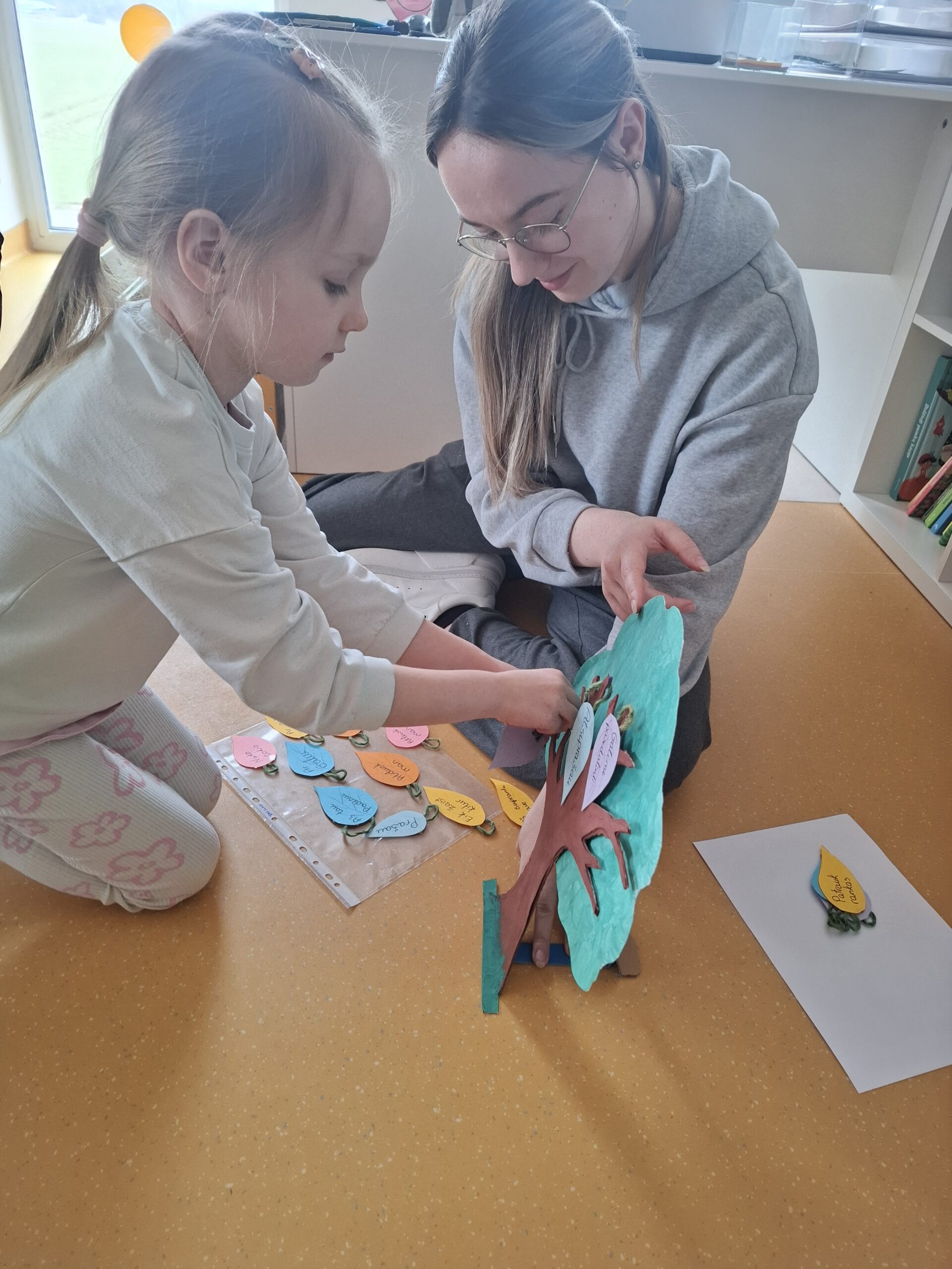 Vėliau vaikai dalyvavo veikloje „Stebuklingi žodžiai, kurie padeda mums susitarti“. Jie dalijosi jiems žinomais gražiais ir mandagiais žodžiais (pvz.: ačiū, prašau, ar galiu, atleidžiu), kurie buvo užrašomi ant spalvotų lapelių ir kabinami ant medžio, taip kuriant „stebuklingų žodžių medį“. Ši veikla skatino vaikus vartoti pagarbius žodžius ir ugdyti mandagaus bendravimo įgūdžius.