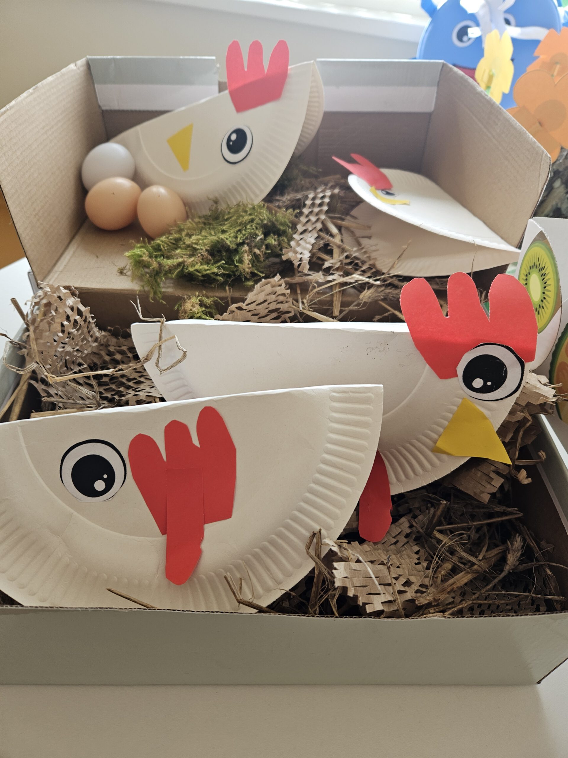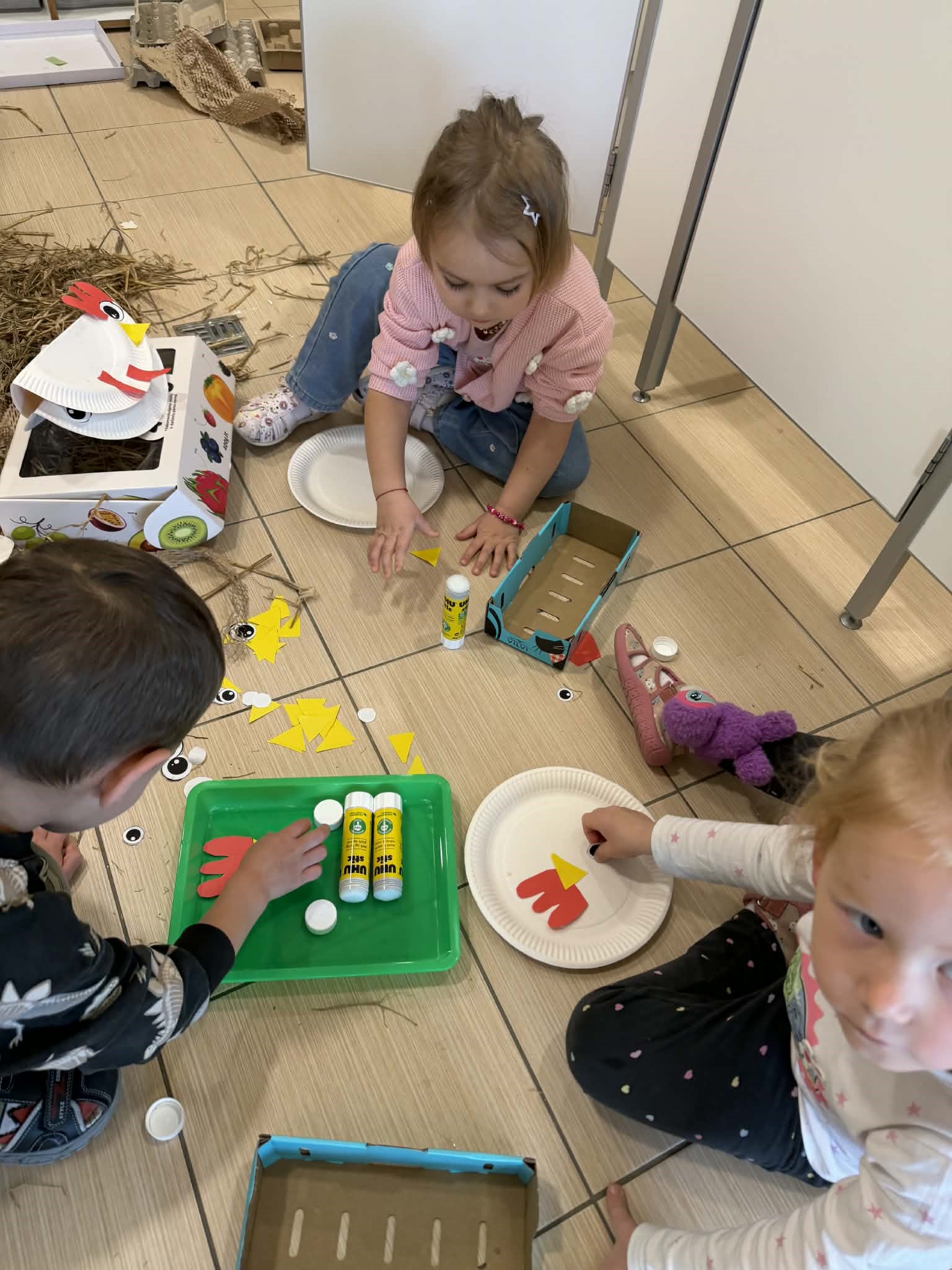 Kūrybinio dialogo kontekste ugdytiniai kūrė „vištų namelį“ iš įvairių medžiagų – dėžių, popieriaus, šiaudų. Veiklos metu jie „apgyvendino“ vištas, imitavo jų veiklą, įsitraukė į vaidybinį žaidimą, taip lavindami vaizduotę, kūrybiškumą bei bendradarbiavimo gebėjimus.
