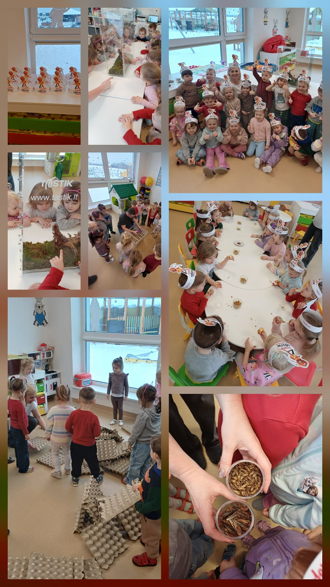 Lopšelyje-darželyje „Uosiukas“ ikimokyklinėse „Kiškučių“, „Skruzdėliukų“, „Ančiukų“ grupėse ir priešmokyklinėje „Ežiukų“ grupėje vyko patyriminė edukacija. Į svečius atvyko „Svirpliai“ iš Marijampolės įmonės „Tastik“, kurie supažindino vaikus su neįprastu, bet labai įdomiu vabzdžių pasauliu.