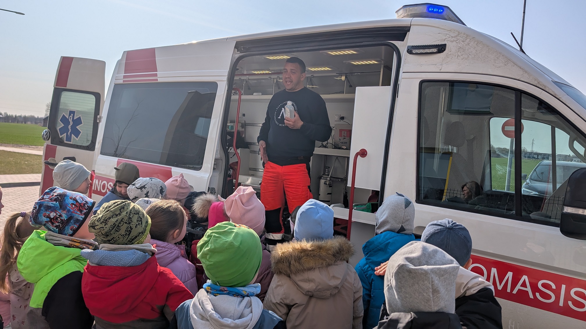 Edukacijos metu vaikai susipažino su paramediko profesija ir sužinojo, kokiose situacijose šie specialistai skuba į pagalbą. Paramedikas vaikams pasakojo, kaip elgtis nelaimės atveju, kodėl svarbu gebėti padėti sau ir šalia esančiam, priminė, kokiu telefonu kviesti pagalbą. Priešmokyklinukai sužinojo, kas slepiasi paramedikų kuprinėse ir apžiūrėjo įvairius medicininius įrankius, reikalingus teikiant pirmąją pagalbą. Kiekvienas turėjo galimybę paklausyti draugo širdies dūžių stetoskopu. Vaikai aktyviai bendravo su paramediku atsakynėdami ir domėjosi patys užduodami jiems rūpimus klausimus. Praktinės veiklos metu priešmokyklinukai pabandė atlikti širdies masažą darydami paspaudimus specialiam mokomajam manekenui. Edukacijos pabaigoje vaikai apžiūrėjo greitosios pagalbos automobilį iš vidaus ir susipažino su jame esančia įranga.