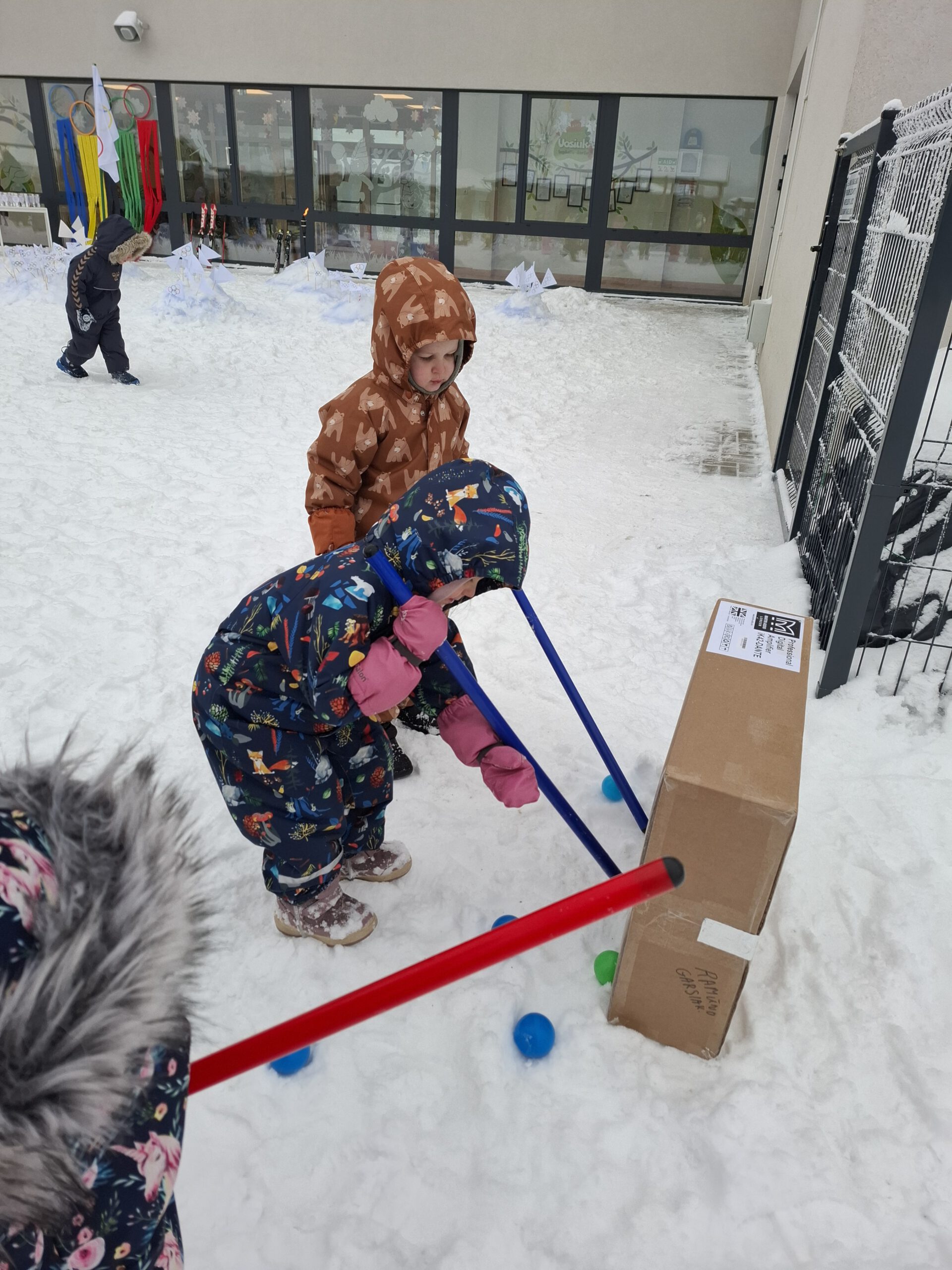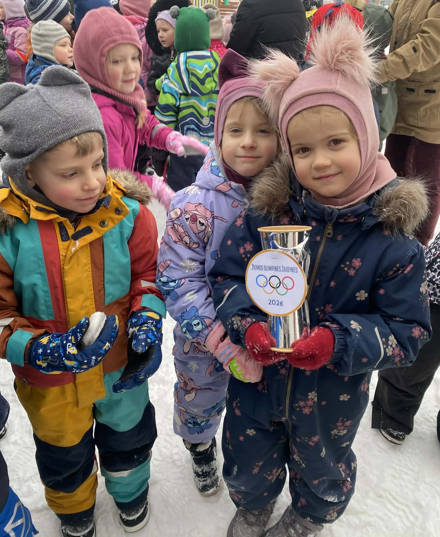 Vasario 11 dieną lopšelio-darželio kieme vyko smagios ir aktyvios „Žiemos olimpinės žaidynės 2026”. Šventė prasidėjo iškilmingu atidarymu – skambant muzikai buvo įnešta olimpinė vėliava su penkiais spalvotais žiedais. Vaikai sužinojo, kad olimpiniai žiedai simbolizuoja pasaulio vienybę ir draugystę. Simboliškai buvo uždegti olimpiniai deglai, paskelbę žaidynių pradžią.